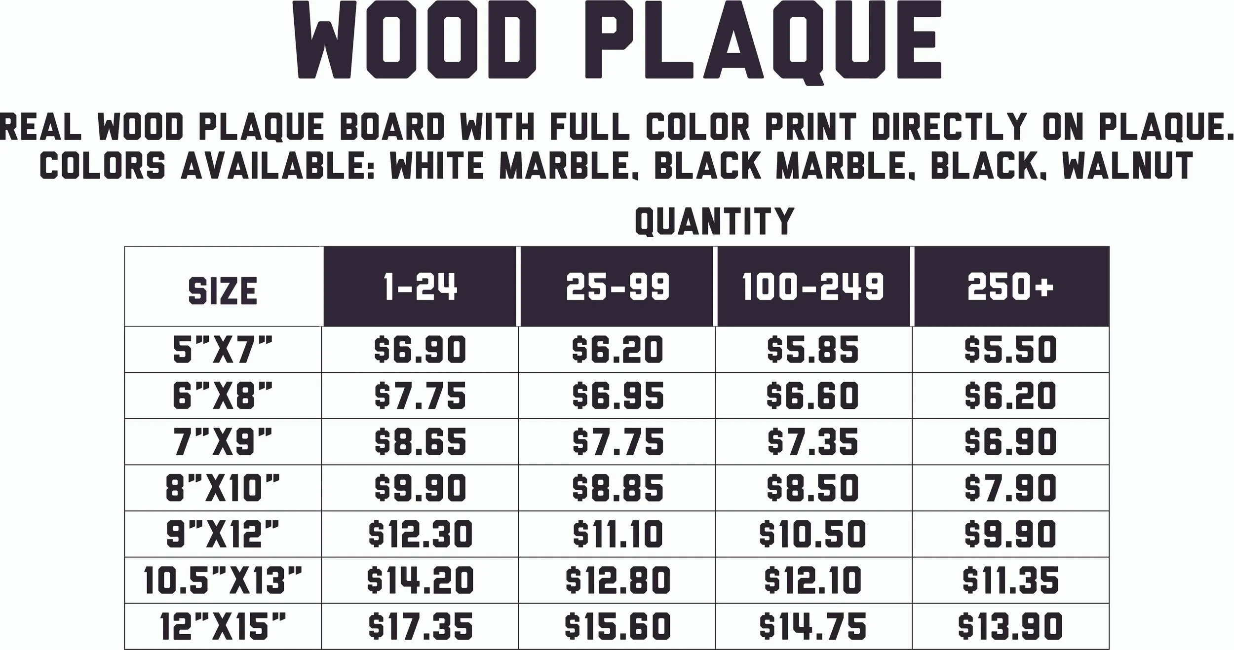 The award that never goes out of style! If you want a plaque with some weight to it this is your award, a classic wood board with a modern full color print directly on the board. We have multiple colors and sizes available.